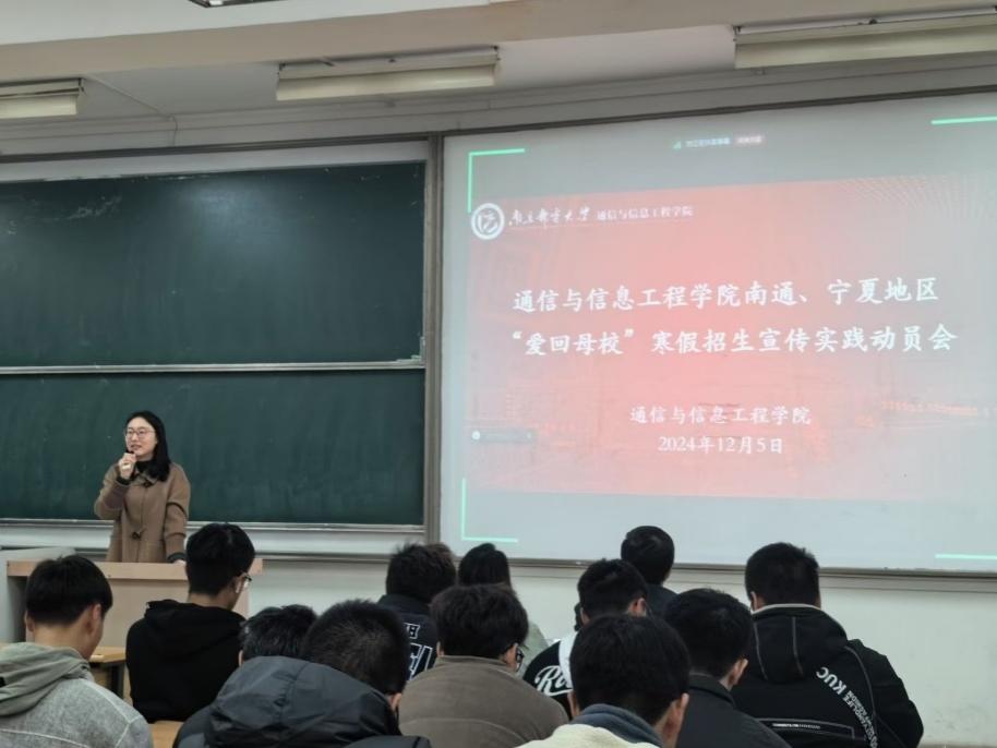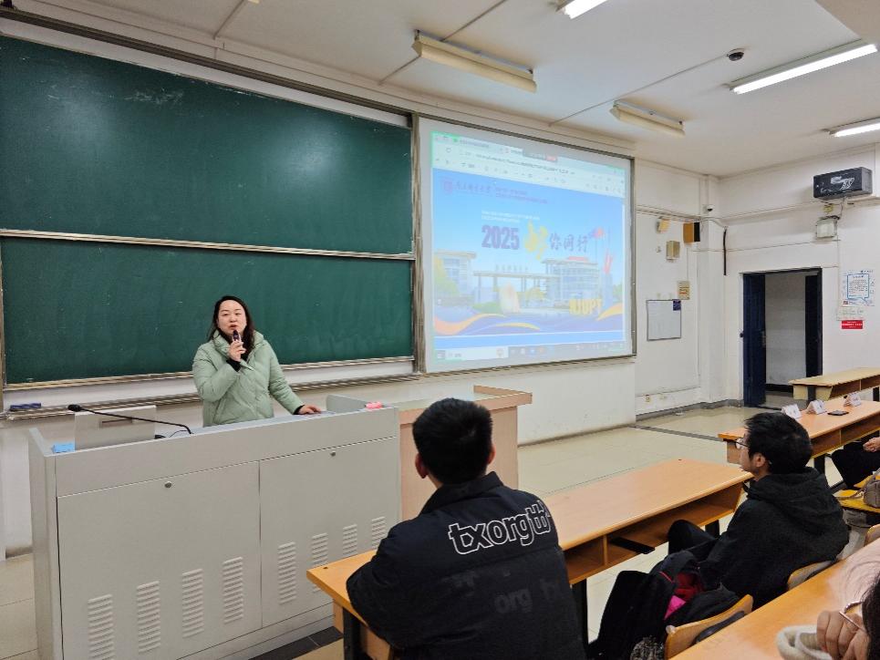 赵伟副处长对“爱回母校”招生宣传实践活动进行专业讲解。她阐明了活动的具体步骤与策略,通过分享往届活动中的成功案例,激发了同学们的活动参与热情。她希望同学们能够展现出南邮学子的创新精神和实践能力,将对学校的热爱转化到具体行动上来。