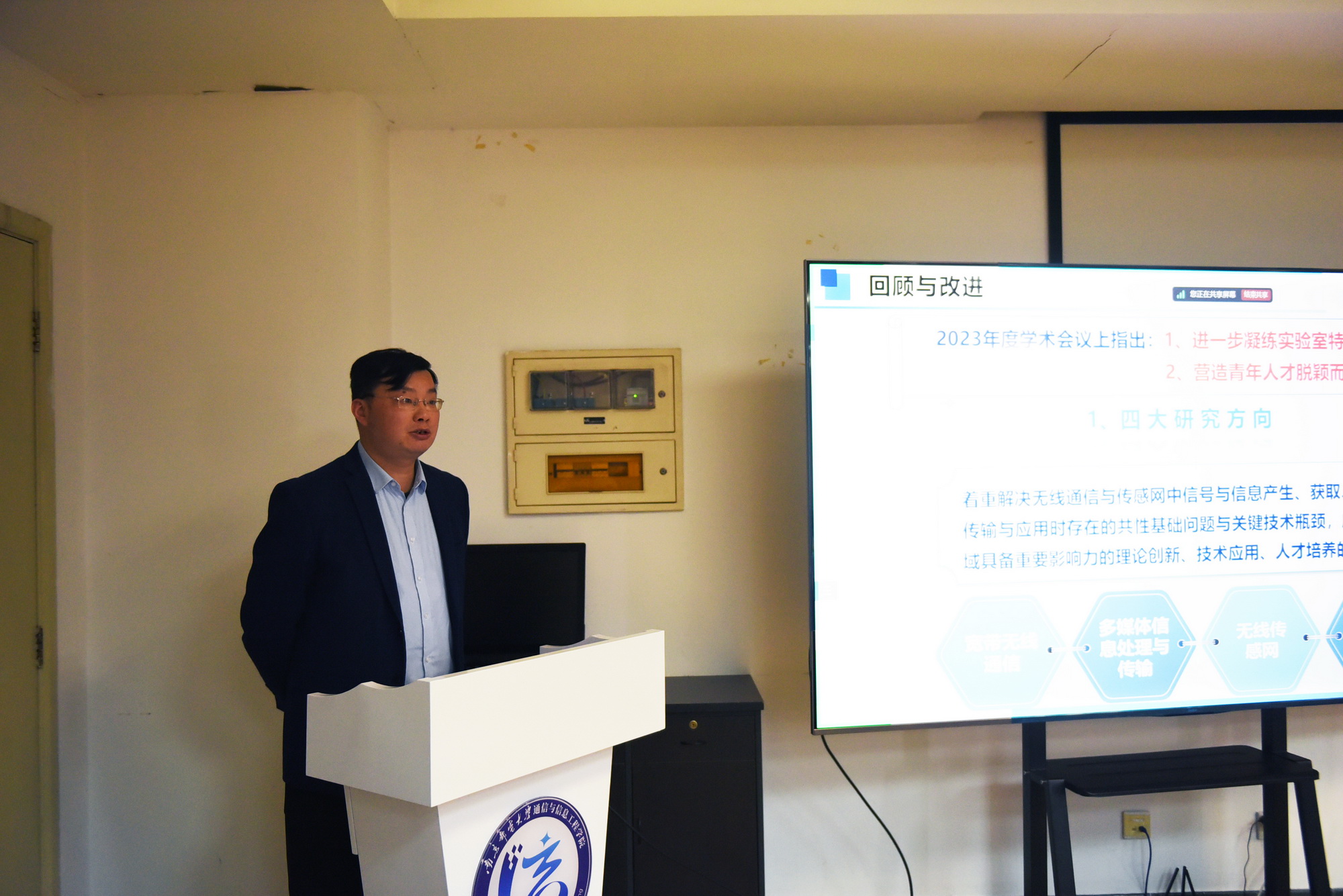 通信与网络技术国家地方联合工程研究中心副主任徐友云教授、宽带无线通信与传感网技术教育部重点实验室主任周亮教授、宽带无线通信技术教育部工程研究中心主任邹玉龙教授分别代表各自平台向与会专家汇报在科学研究、技术创新、团队建设、成果转化以及人才培养等方面的成果,并就下一阶段发展规划等做了汇报。