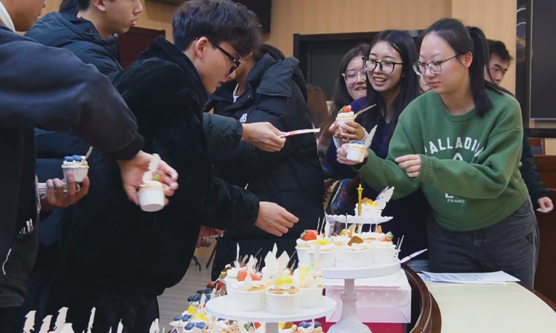 会议的最后,王小露书记和李晨冉老师为同学们分发小蛋糕,精致小巧的蛋糕上是李晨冉老师为同学们亲笔写下的真挚祝福,同学们簇拥着上前领取,互相拍照留念,本次年级大会在欢乐温馨的氛围中圆满落幕。青春如炽,扬帆笃志,让我们共同期待同学们能通过自己坚实的努力取得更好的成绩,踏浪前行,逐梦远航。