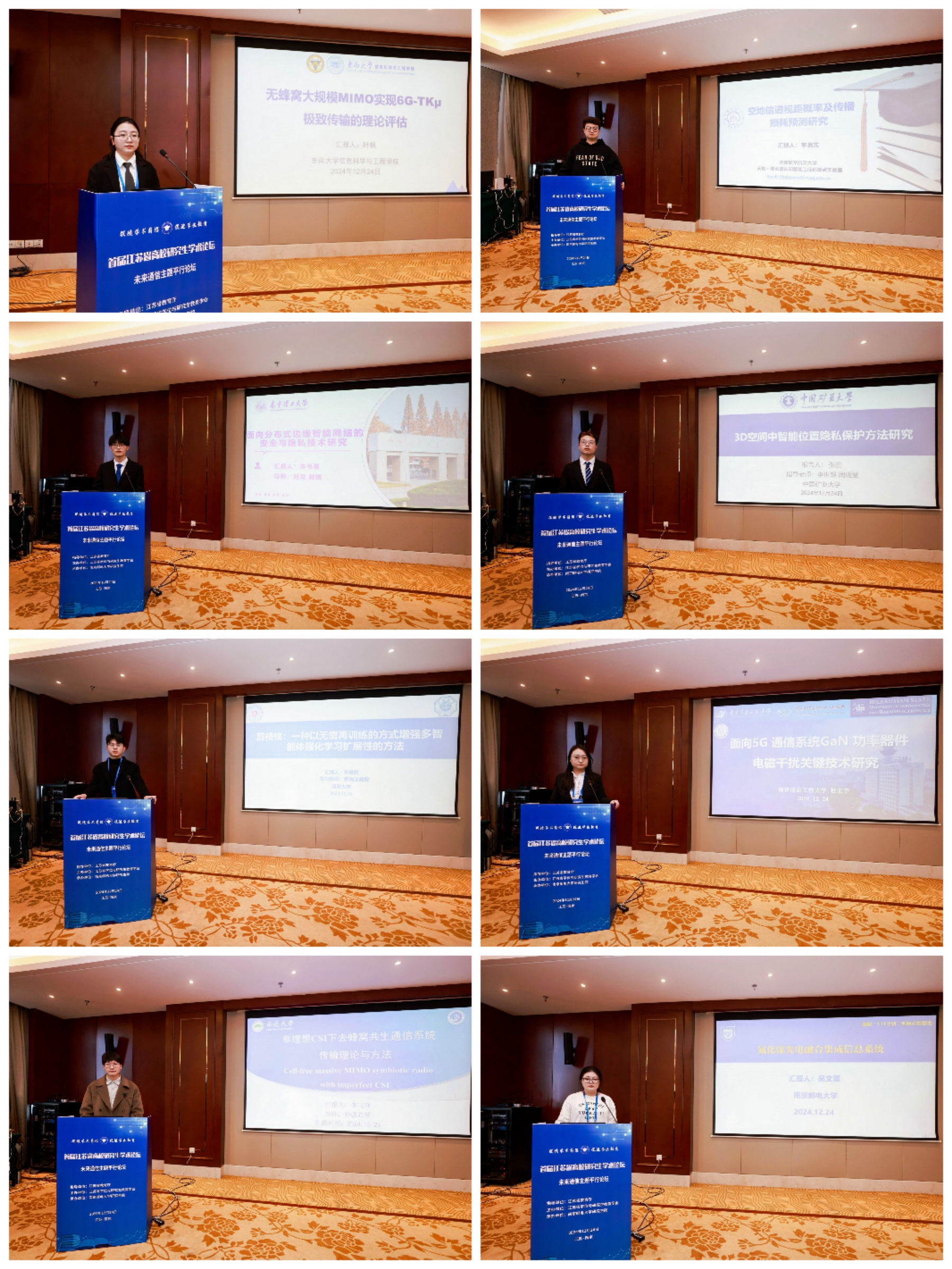 12月24日上午,我院承办江苏省首届研究生学术论坛未来通信技术分论坛,论坛以“未来通信技术”为主题,东南大学、南京航空航天大学、太阳集团等8所高校的优秀在读硕博士研究生作学术报告,内容涵盖6G技术、空地通信、分布式边缘智能网络、隐私保护等热点领域,展示了研究生在通信技术领域的最新研究进展与前沿探索。