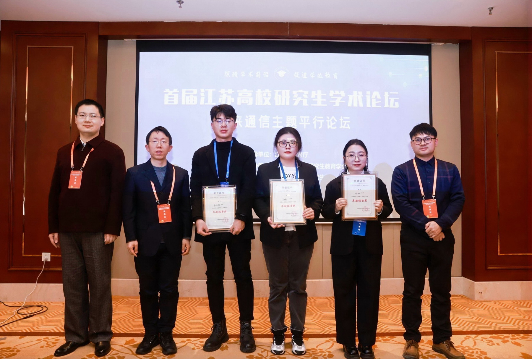 东南大学博士生叶枫探讨无蜂窝大规模MIMO实现6G-TKµ极致传输的理论潜能,为6G参数设计提供理论支撑;南京航空航天大学博士生李瀚芃聚焦空地信道特性,提出优化模型,为空地通信系统的设计与优化提供关键依据;南京理工大学博士生朱韦豪聚焦分布式边缘智能中的安全与隐私技术,探索通信网络、区块链及差分隐私等关键技术的应用;中国矿业大学博士生张鹏围绕3D空间位置隐私保护,探讨B5G/6G通信场景中位置与轨迹隐私保护的挑战与解决方案,为未来通信提供理论与技术支持;河海大学博士生朱胜超提出“剪枝核”方法增强多智能体强化学习扩展性;南京信息工程大学博士生杜宏宇针对5G通信中GaN功率器件问题展开研究,为解决能耗和电磁干扰提供理论基础;南通大学博士生李飞洋提出去蜂窝共生通信物联网架构,提高频谱效率;太阳集团硕士生吴文萱研究氮化镓光电融合集成信息系统,致力于构建全场景覆盖的移动通信系统及网络。