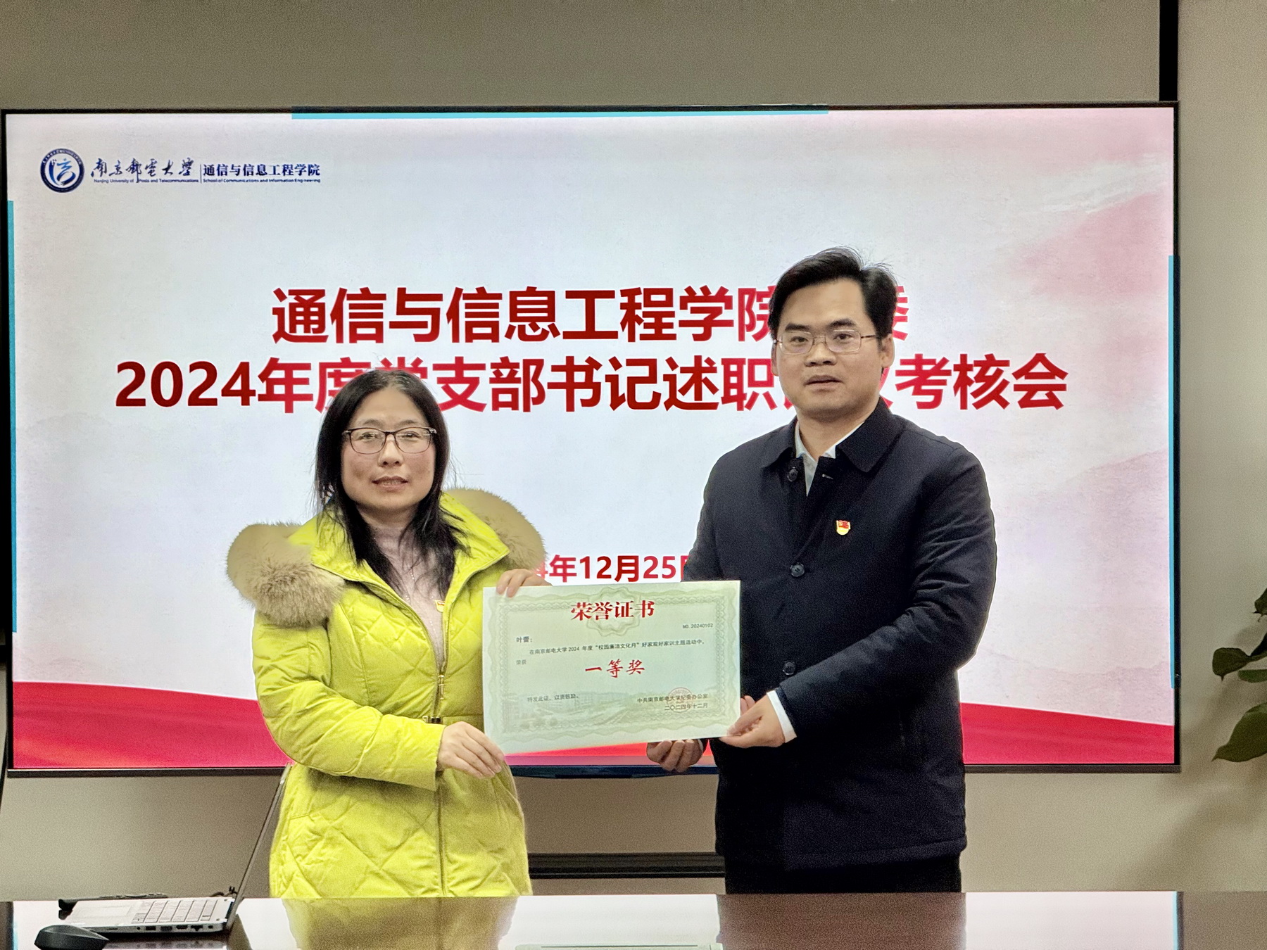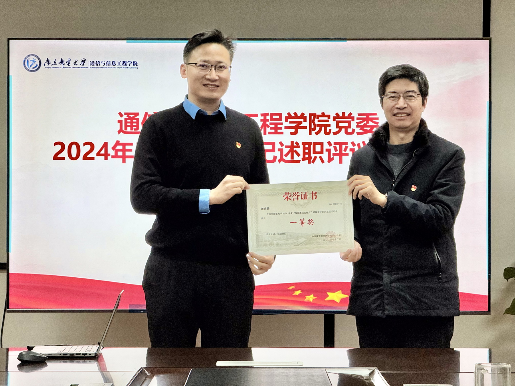 会议还为校2024年度“校园廉洁文化月”好家规好家训主题活动的获奖者颁发了荣誉证书。