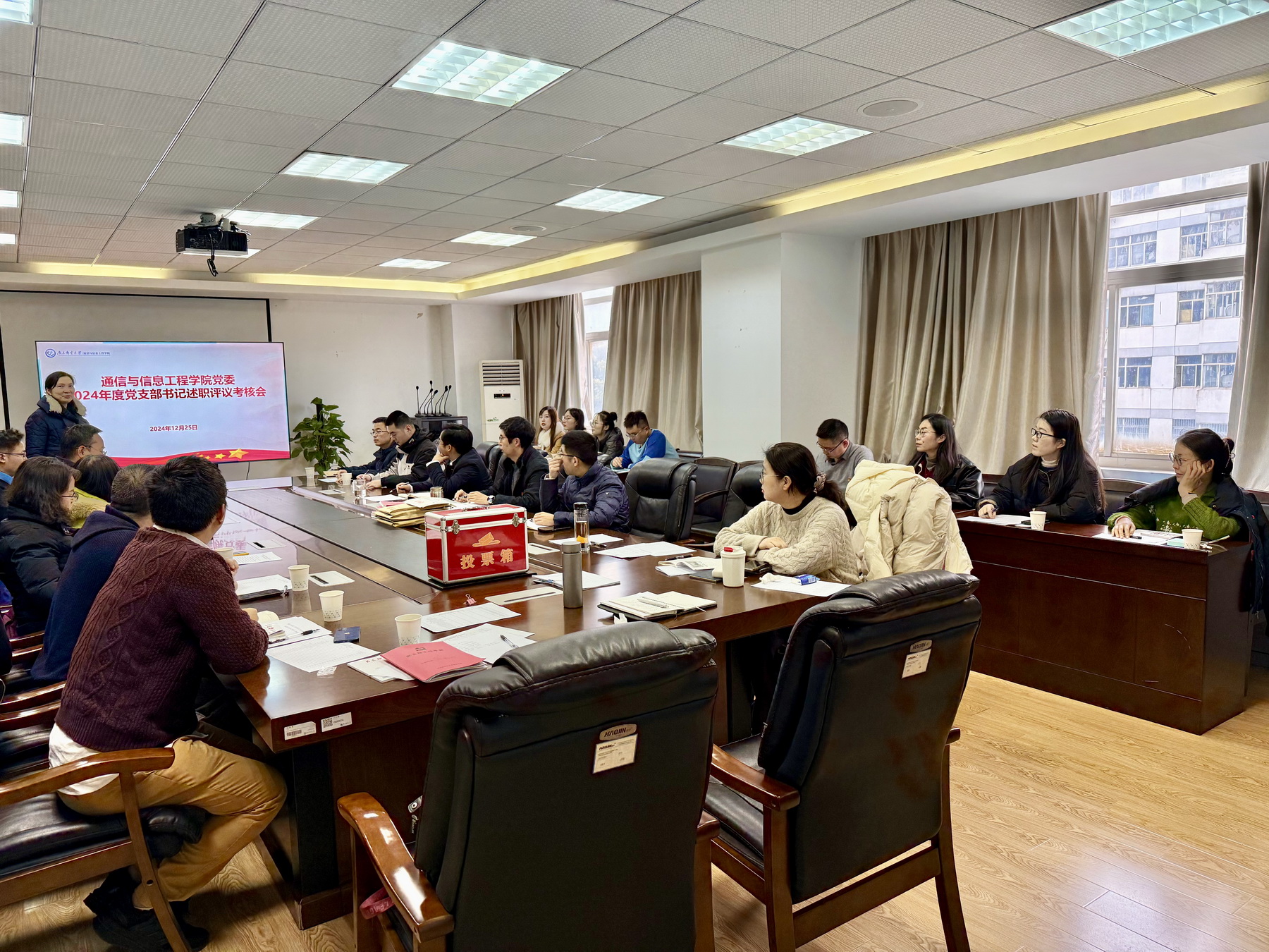 会议采取无记名投票方式对各党支部及支部书记2024年度工作进行了等级测评。