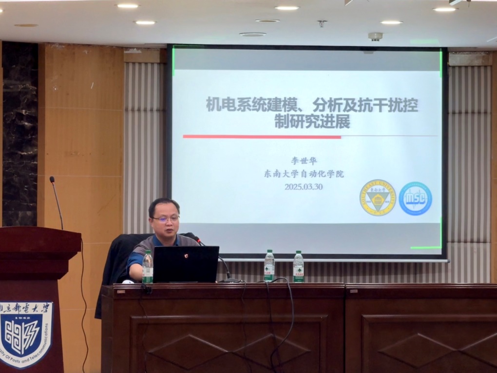东南大学李世华教授作《机电系统建模、分析及抗干扰控制研究进展》。李教授在演讲中提到机电系统中存在各类非线性环节,以及摩擦、间隙、滞环等因素,其对机电系统性能的影响极大。针对上述问题,李教授讨论了如何从时延、约束安全控制、干扰观测与补偿等角度提高闭环系统的抗干扰性能和精度。他还分享了一些最新理论研究进展,及其在机电系统的验证结果。