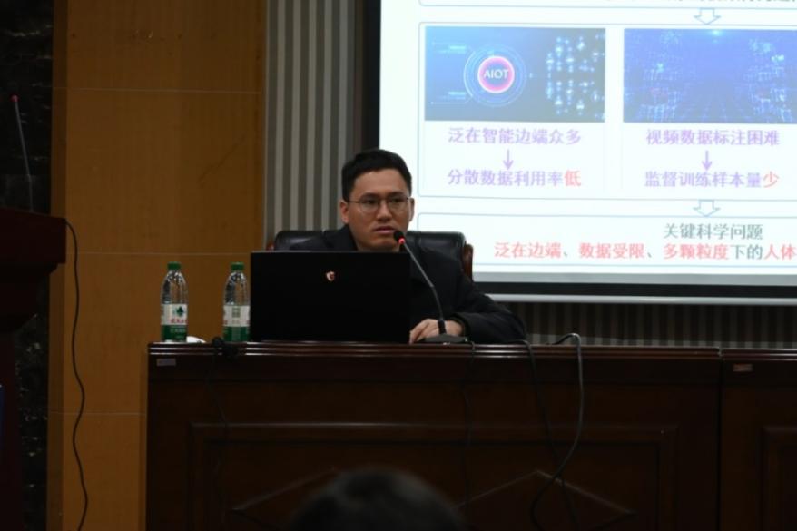 上午论坛的第一场报告是南京理工大学舒祥波教授带来的《人体行为智能计算》。舒教授围绕广泛实际场景中分散数据利用率低、监督训练样本量少、行为语义复杂性高等问题,讨论了多样化场景下的各类视频行为理解的研究。此外,他还重点介绍了其课题组近年来在“边云协同的模型预训练与微调”、“数据受限的人体行为鲁棒表征”、“细粒度/多粒度行为分析与推理”等方面的研究成果。