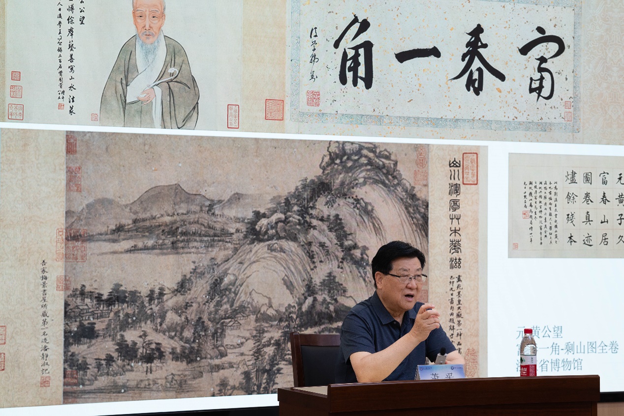 随后,萧平老师以《中国古代书画鉴定概论》为题,深度剖析了书画鉴定与收藏实践方面的经验技巧与独到见解,并通过顾恺之、唐伯虎、傅抱石、齐白石等一系列具有代表性的画家作品分析,详细介绍了作品的笔墨技法,生动展现了艺术的多样性,不仅为同学们提供了宝贵的艺术知识,更激发了同学们对于艺术审美的深刻思考。