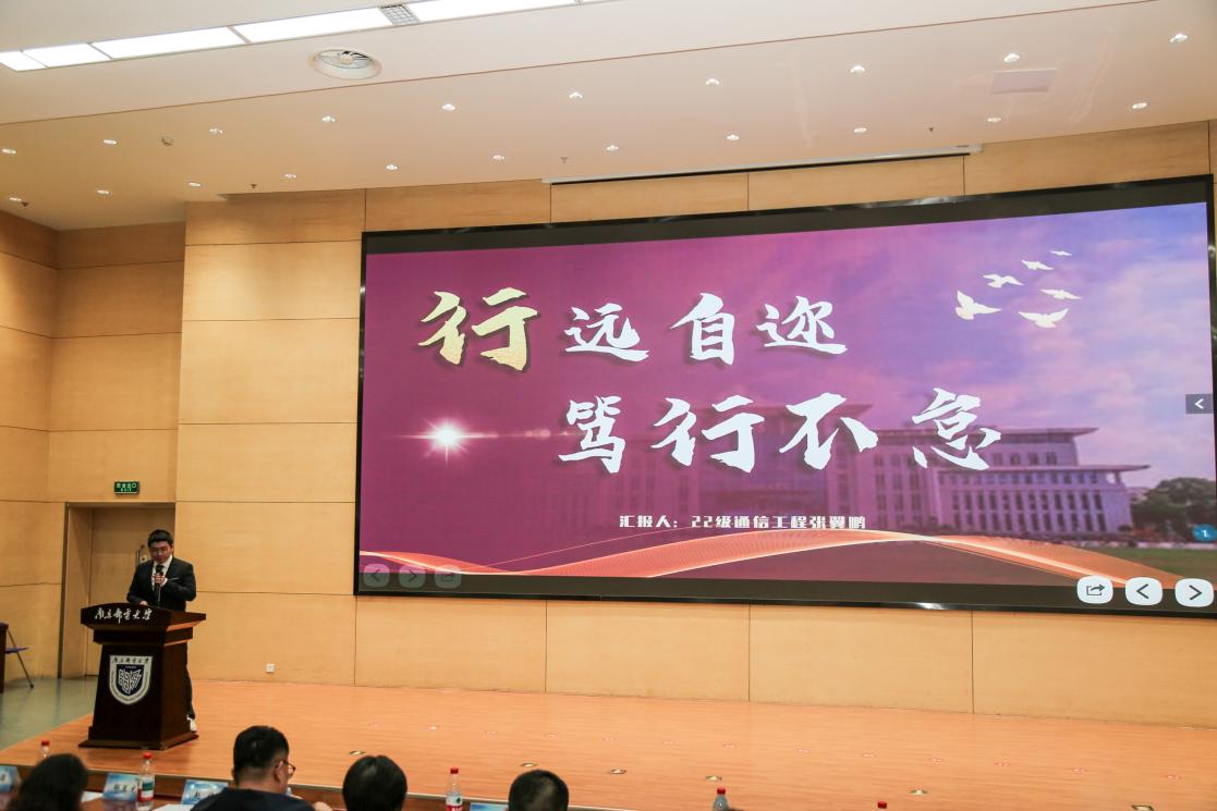 国家奖学金、十大学术之星获得者2022级通信与信息系统博士研究生王林宁以“方向、选择、超越”为主线,讲述了自己从LED器件研究到空天地海全光通信网络构建的科研历程。他表示希望优秀的同学们不论在今后工作还是学习中都能以方向为灯塔,彰显邮子担当;以选择为基石,铸就邮子风采;以超越为使命,争当科技报国主力军!