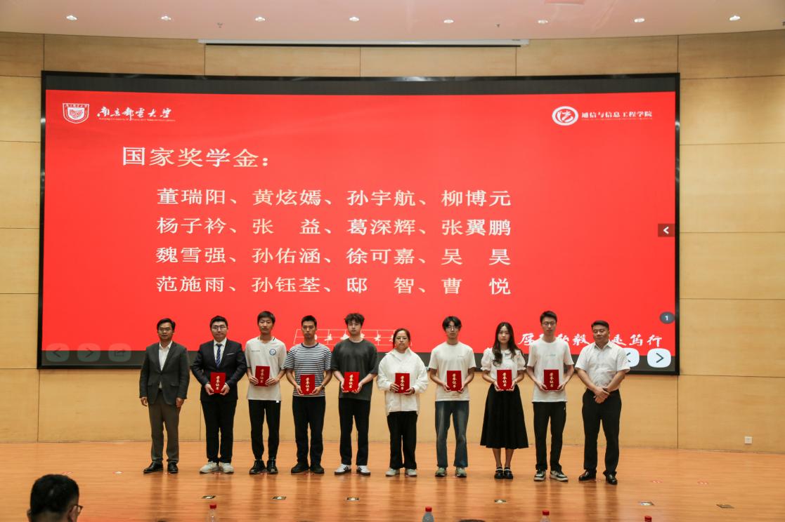 随后,我校学生工作处处长李晓华,学院党委书记徐雷为江苏省优秀学生、江苏省“两红两优”获奖代表颁奖。我校党委研究生工作部部长何海洋、“同勉电信优秀学子奖励金”捐赠者吴永宁先生为同勉电信优秀学子奖励金获得者颁奖。