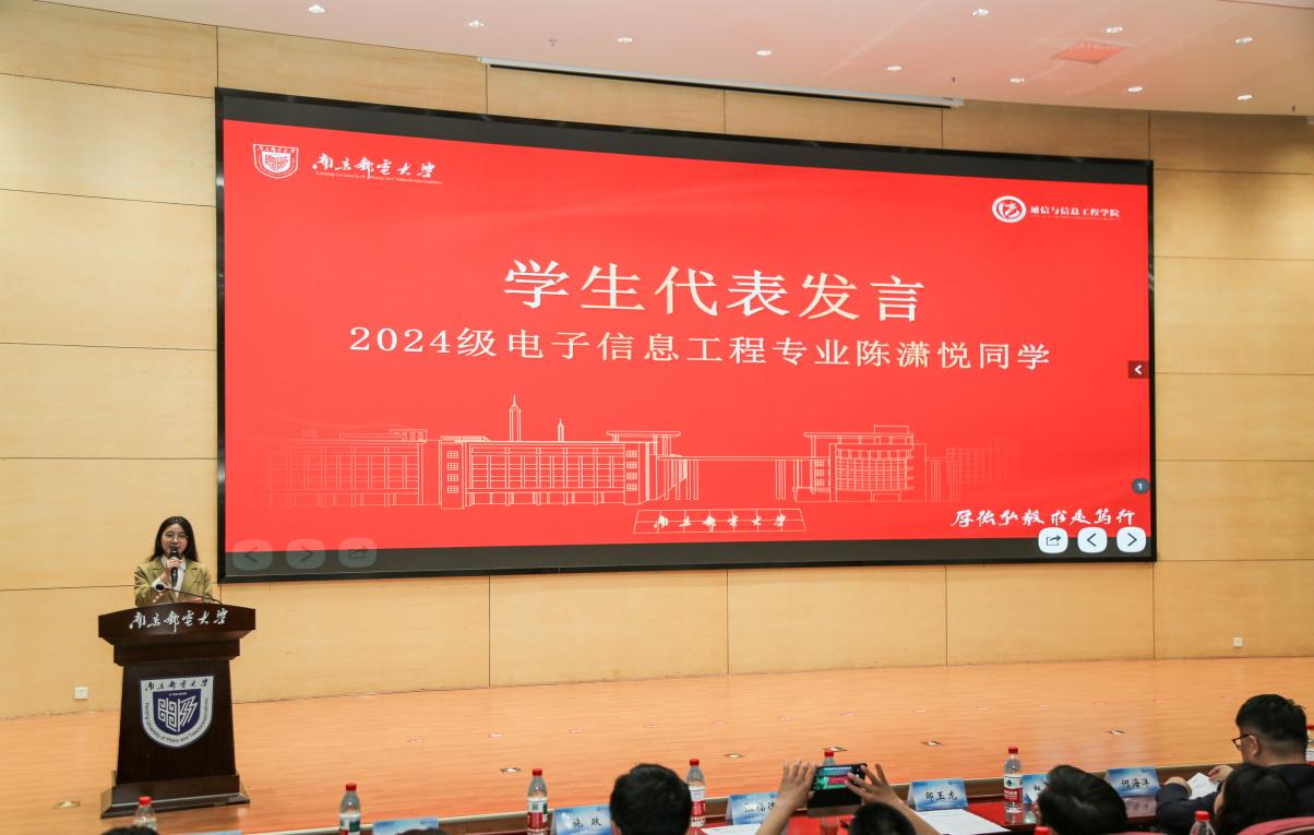 2024级电子信息工程专业陈潇悦同学作为学生代表分享了自己求学之路遇到的困惑,表达了对导师制的殷切期待。她表示,导师制的意义不在于“被动输入”,而在于“主动生长”,未来将以谦逊之心求教,以笃行之姿躬耕,为学院发展添砖加瓦!
