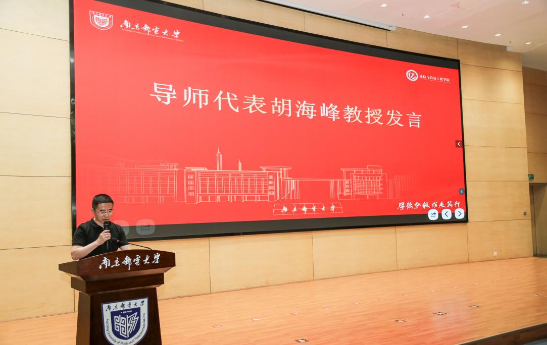 随后,导师代表胡海峰教授上台发言。他表示本科生导师制的实施,打破了传统教学模式中师生之间相对单一的课堂交流模式,增强了师生之间的交流合作。胡教授强调,科研不是斤斤计较投入产出的活动,也不只是个人简历中的用于炫耀的经历,科研更是一种探索,是不断追问“为什么”的过程,是不断尝试、不断失败、最终又不断突破自我的成长之路。希望同学们珍惜这个难得的机会,主动与导师沟通交流,积极参加科研活动,培养自己的创新能力和实践能力。