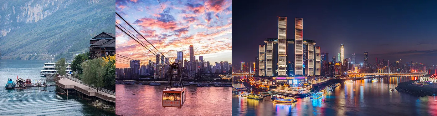 重庆是中国西南的山城,坐落在长江与嘉陵江交汇处。这里高楼依山而建,洪崖洞吊脚楼和穿楼轻轨堪称奇观。作为麻辣火锅发源地,夜市美食令人难忘。磁器口古镇、大足石刻展现千年历史,鹅岭二厂艺术区充满活力,两江夜游尽显小香港风情。传统与现代在此完美交融,造就独特的城市魅力。
