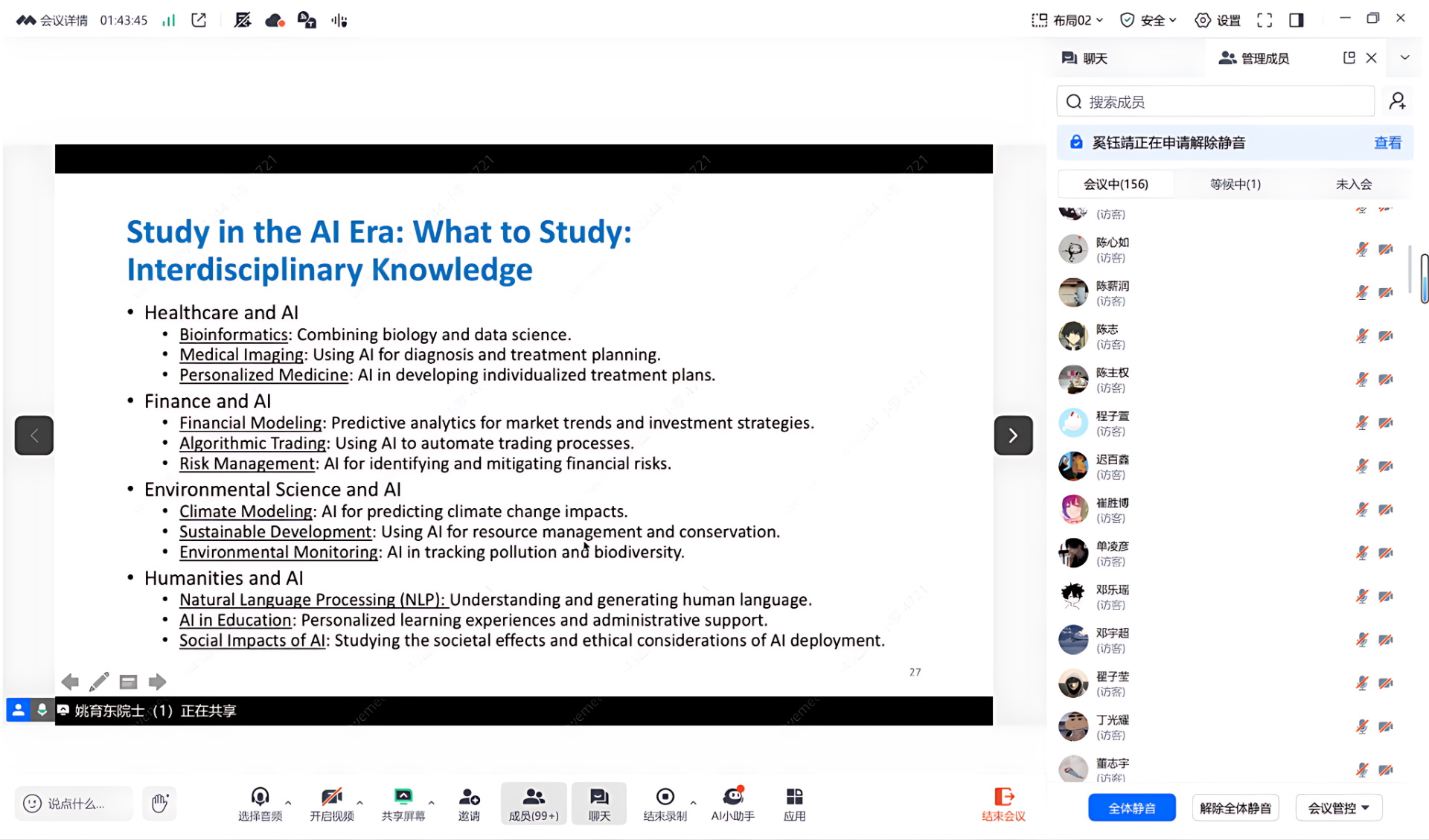 在专题讲座环节中,加拿大工程院院士姚育东,中兴通讯总监张晗,学院教授、博导张军,学院教授、IEEE Fellow郑淦四位特邀专家分别就《人工智能的过去、现在和未来:我们如何在人工智能时代学习、工作、成长》《中兴通讯数字化转型实践》《无线通信发展历程与前沿技术》《面向6G的流态天线系统和资源优化方法》等主题为同学们带来内容丰富、引人入胜的专题报告。
