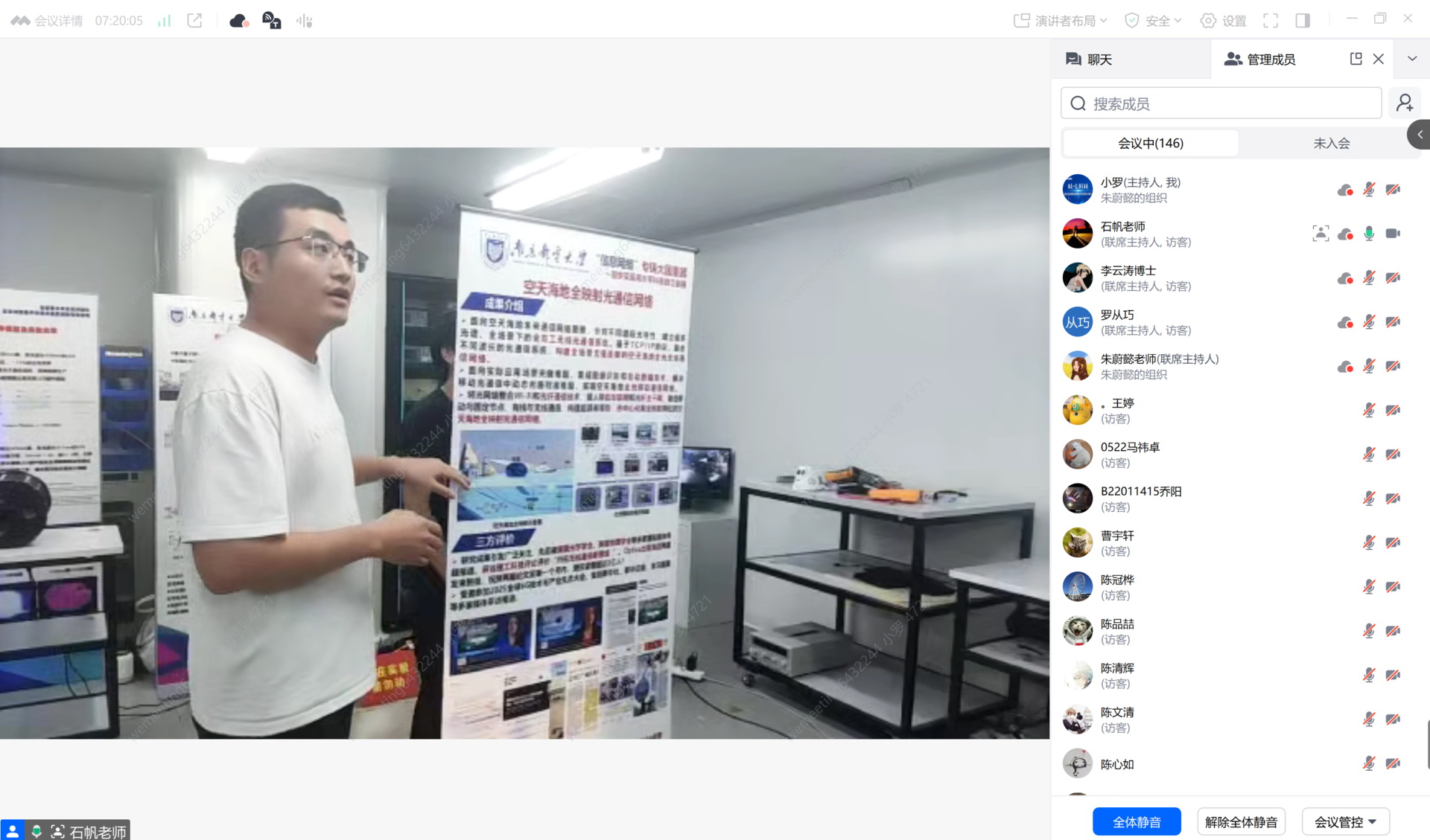 在实验室云参观环节中,学员们跟随镜头的脚步依次前往四个重点实验室,庄文芹老师、石帆老师、李云涛博士以及邵澄老师分别就各自科研平台的发展历史、科研特色、人才培养成效等进行详细介绍并热情欢迎同学们报考通信学院。