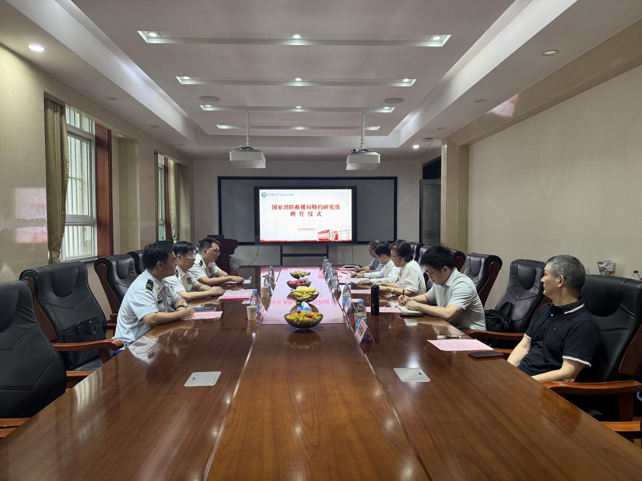 江苏省消防救援总队办公室一级助理员梁意,学院张更新教授,办公室主任闫向龙参加了聘任仪式。
