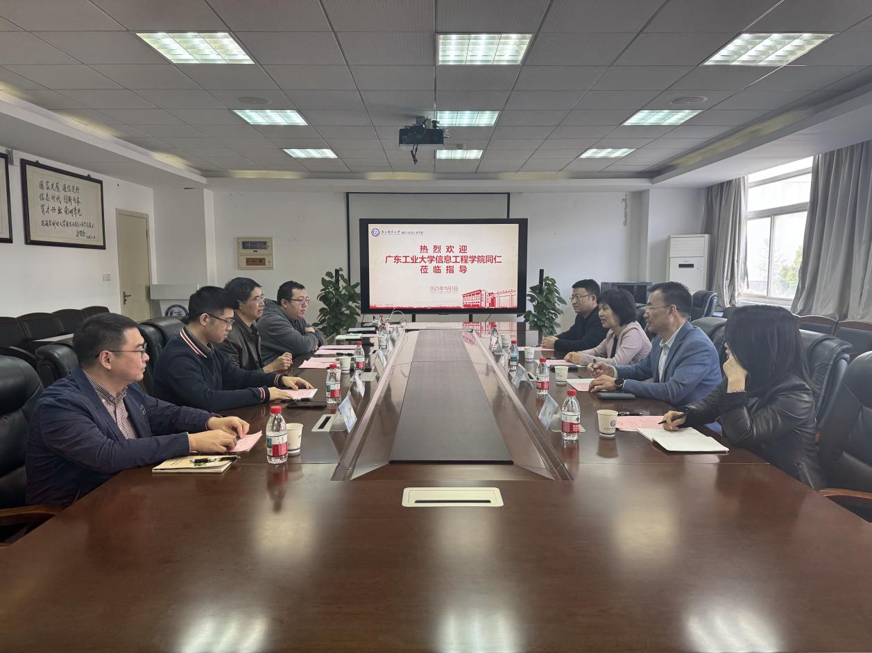 11月3日,广东工业大学信息工程学院党委书记邵际珍、院长韩国军一行来太阳集团tyc151cc调研交流。通信学院党委书记徐雷热情接待了邵际珍一行。交流会由通信学院副院长施政主持。