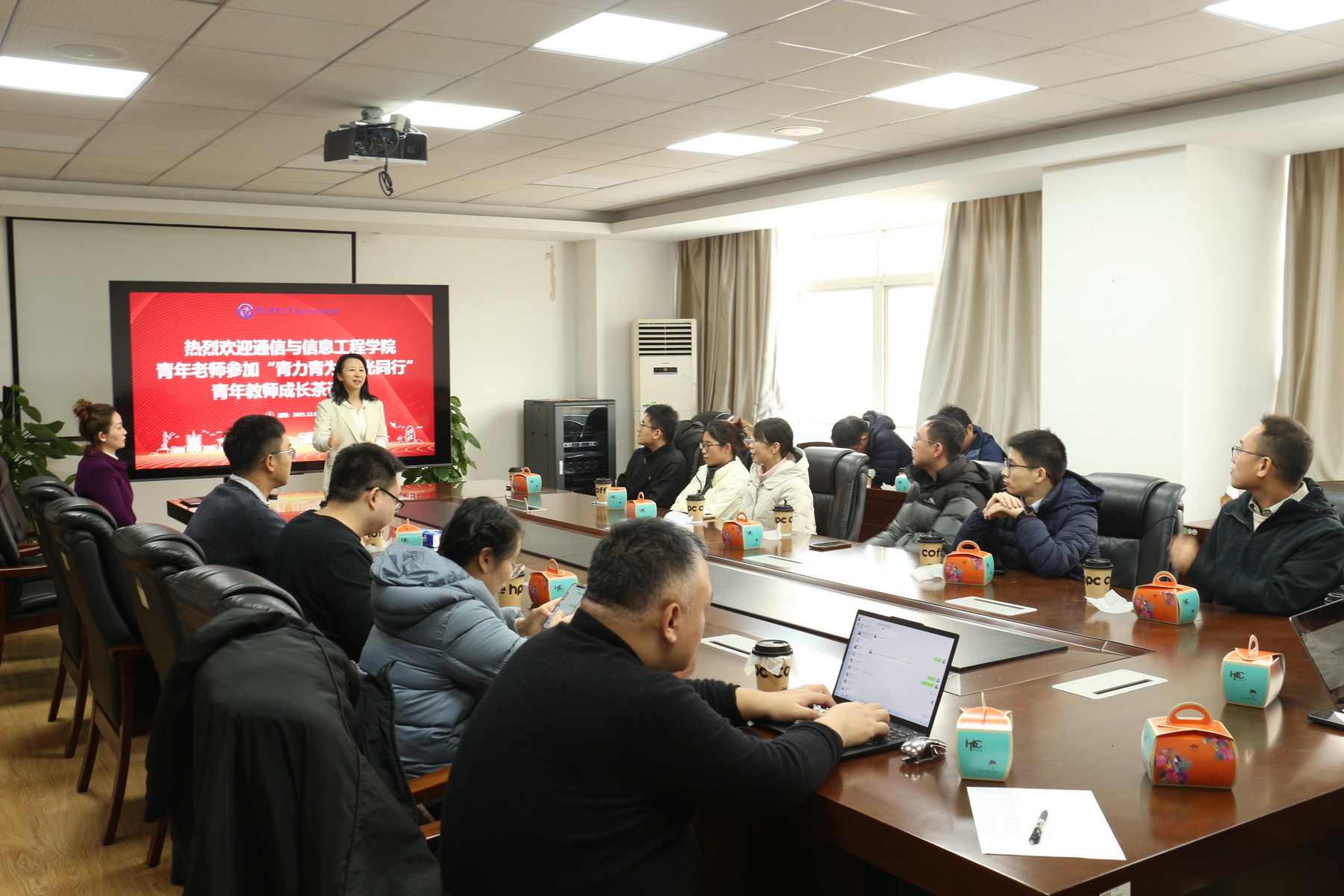 12月4日下午,太阳集团tyc151cc在科研楼举办“青力而为 逐光同行”青年教师成长茶话会,三十余名青年教师齐聚交流。