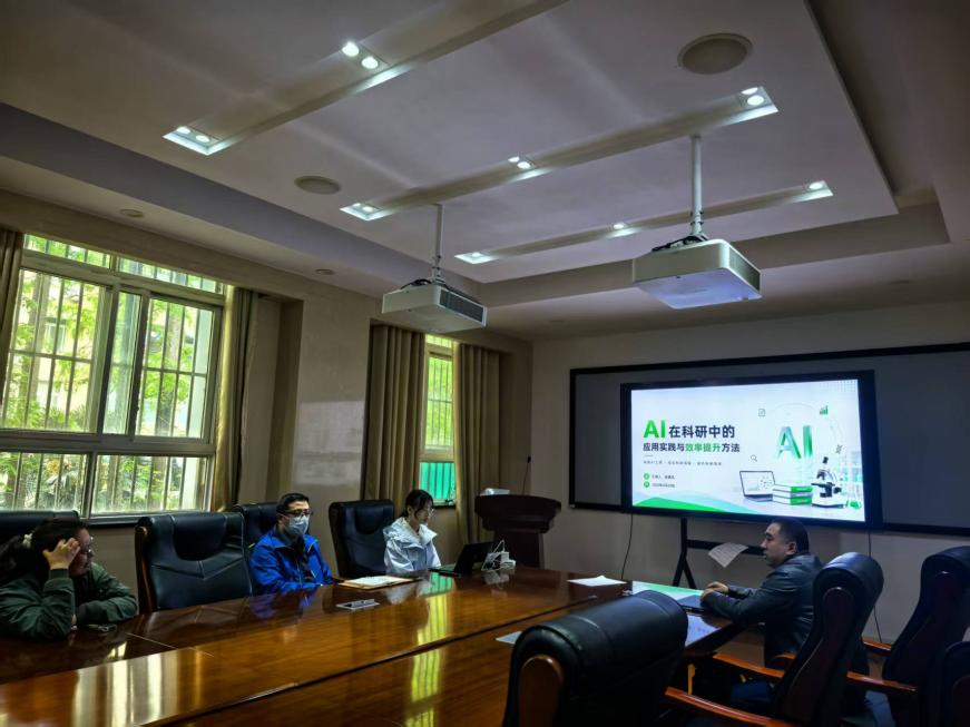 本次研讨邀请了两位在AI工具应用方面有着丰富经验的研究生代表进行专题分享。会上,两位同学深入浅出地介绍了国内外大语言模型等在学术研究中的多维度应用,详细梳理了各类AI工具在文献检索与综述、实验代码复现、论文梳理润色和ppt制作等场景下的功能特点与适用性。通过直观的图表呈现和生动的案例演示,提供了切实可行的“操作指南”。在随后的交流环节中,现场气氛热烈。参会师生围绕“如何合规高效地使用AI工具”、“AI辅助教学的未来边界”、“AI工具合理运用与人才培养可靠性”等话题展开了深入讨论。参会师生对两位学生的精彩分享给予了充分肯定,并指出,积极拥抱并合理运用人工智能工具,致力于提升科研效率,是顺应时代发展、提升创新能力的必然选择。同时,也对日常教学与科研工作中规范使用AI工具,防止滥用、误用、不加监管与确认的使用开展的讨论,强调需坚守学术诚信底线,严格遵循数据安全与知识产权保护规范。